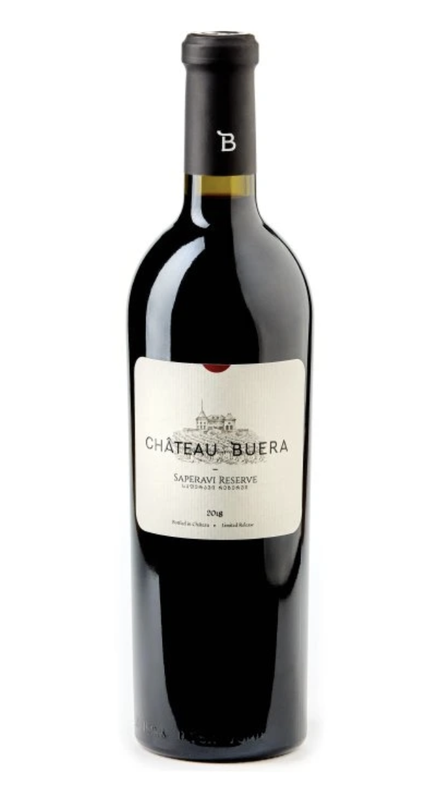 Saperavi 2018 – Reserve od vinařství Chateau Buera je suché červené víno z Gruzie, vyrobené z odrůdy Saperavi pěstované v regionu Kakheti, konkrétně v mikroregionu Napareuli. Toto gruzínské víno z ročníku 2018 je lahvováno v objemu 0,75 l a nabízí bohatý aromatický profil s tóny tmavých bobulí, švestek, černého rybízu, pepře a jemné kořenitosti.
